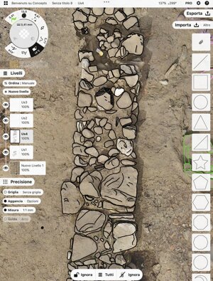 Chimera HC si occupa di realizzare rilievi grafici per saggi preventivi e scavi archeologici e per studi sulle murature, anche con l'uso di fotogrammetria e drone.